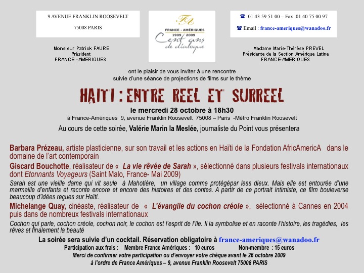 Réservation obligatoire à france-ameriques@wanadoo.fr